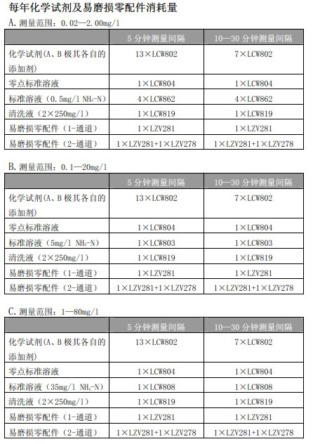 Amtax inter2每年化學(xué)試劑及易磨損零配件消耗量?